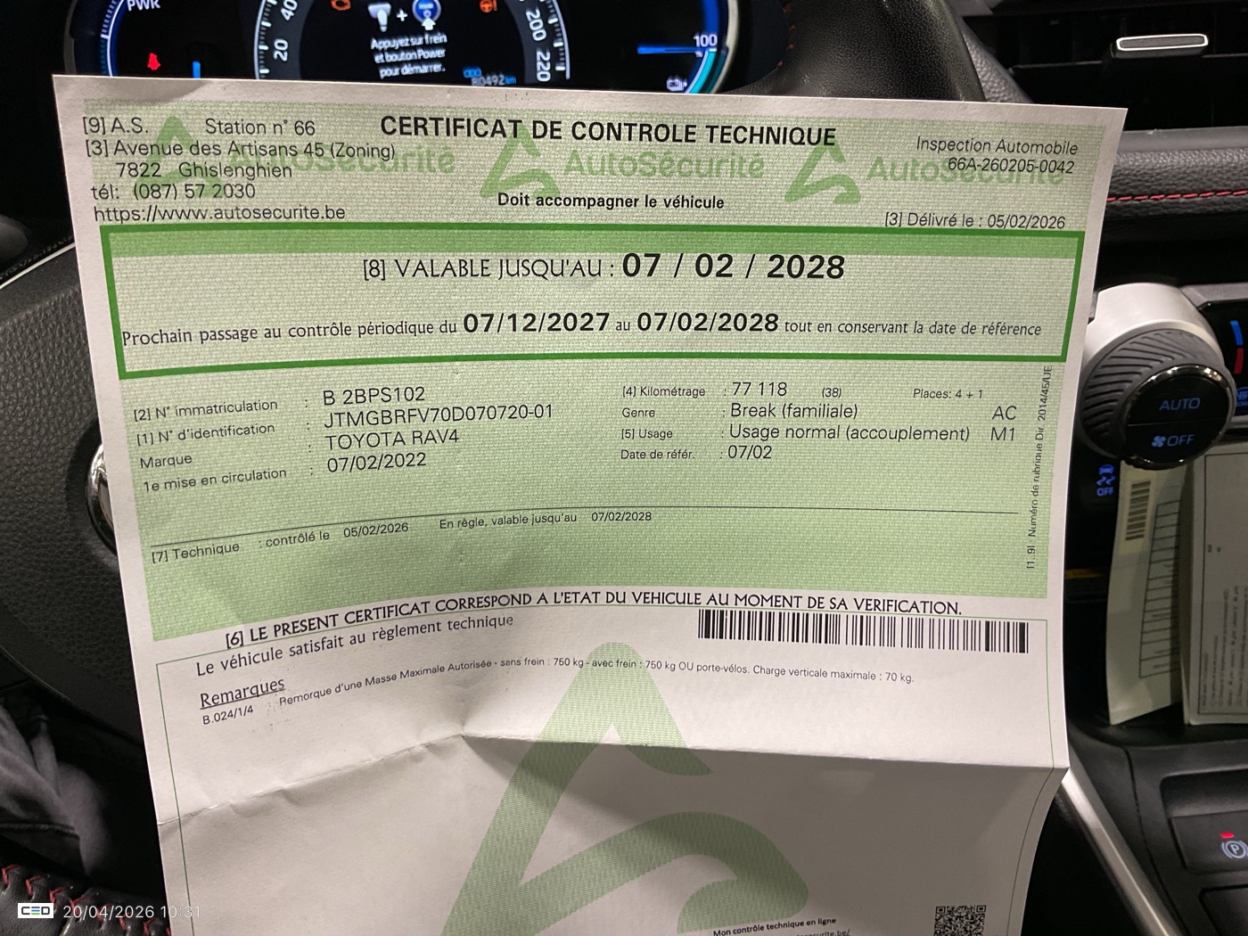 Caméra avant