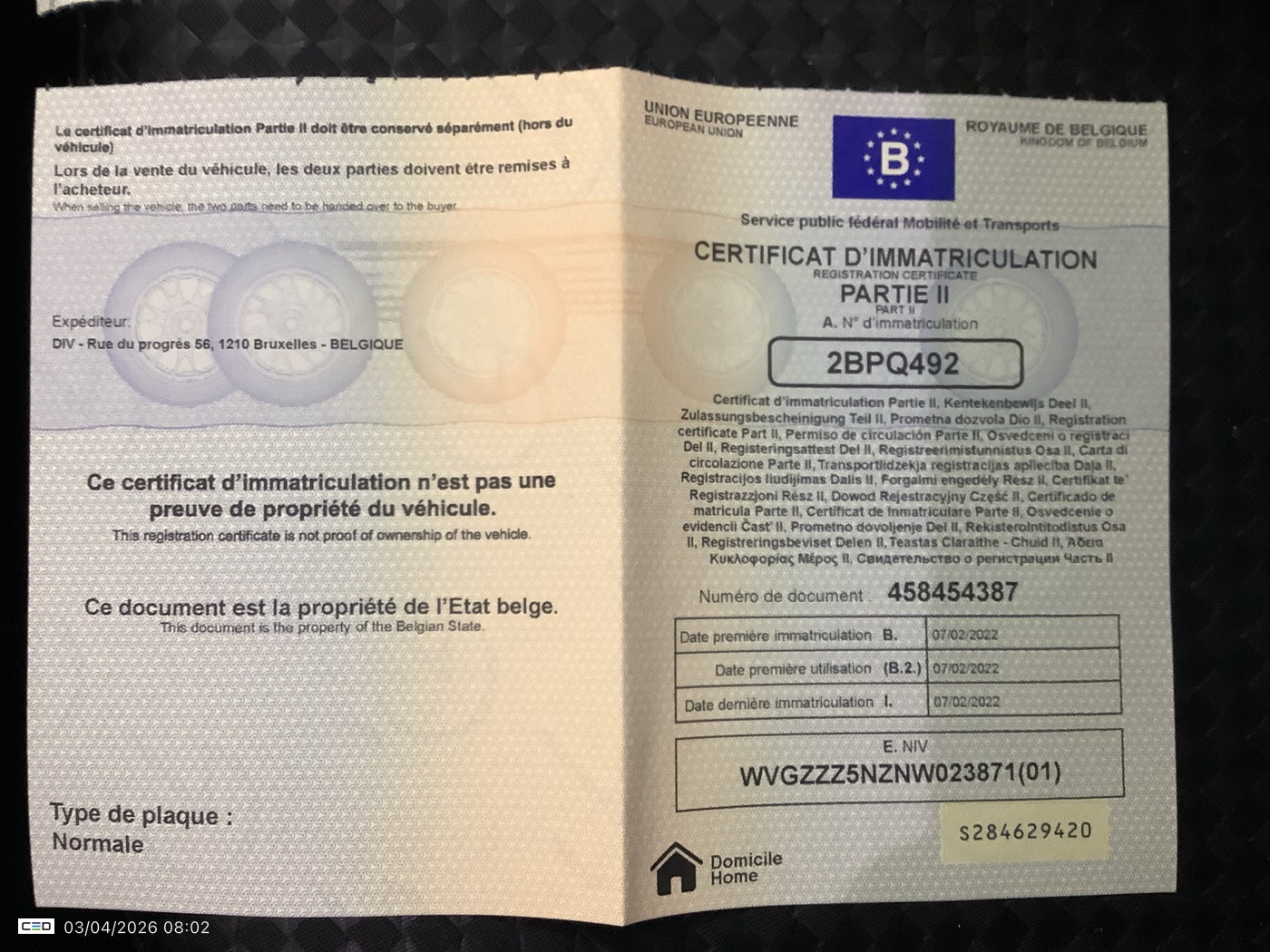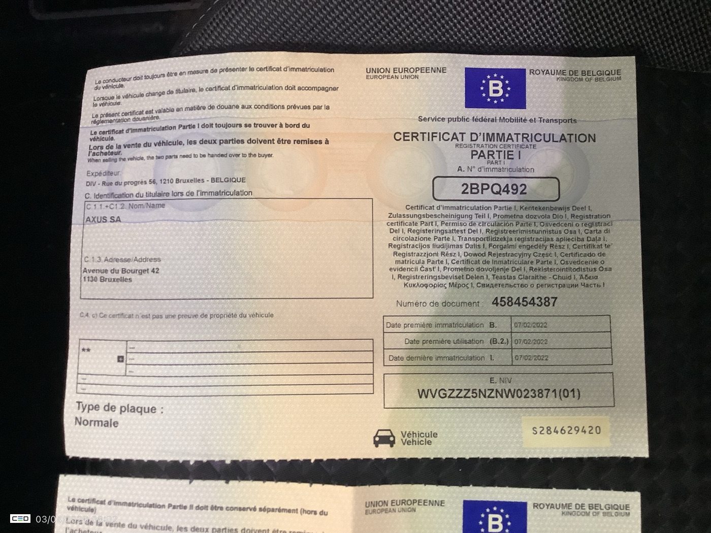 Registration certificate 2: