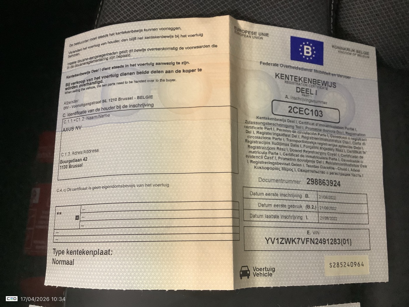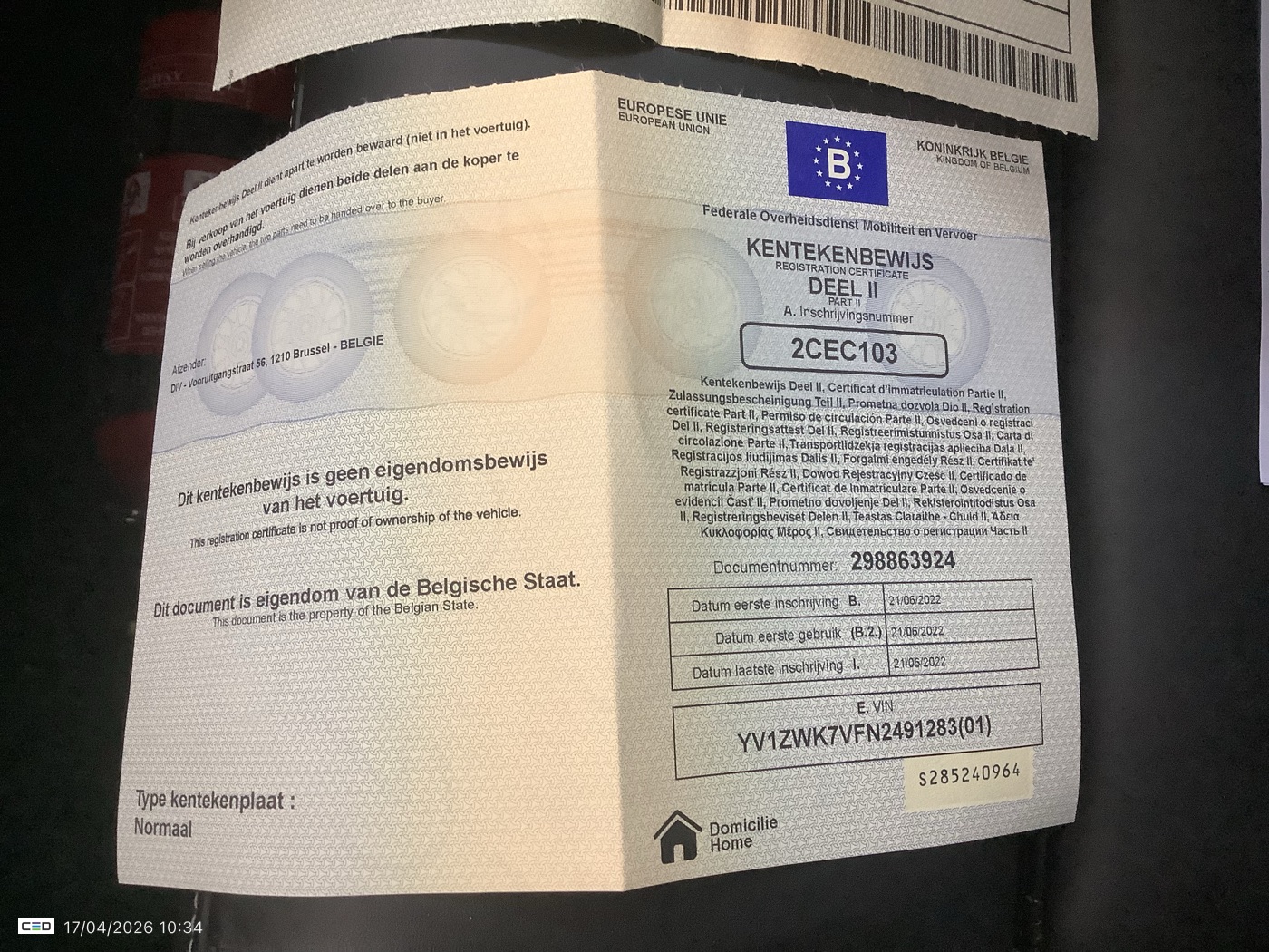 Registration certificate: