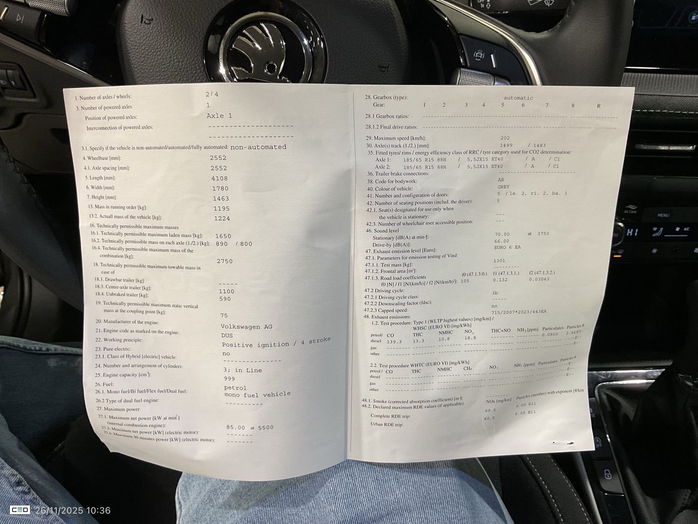 | Front right | 5 mm | Kumho | 185/65R15 88H | Summer | Steel | |