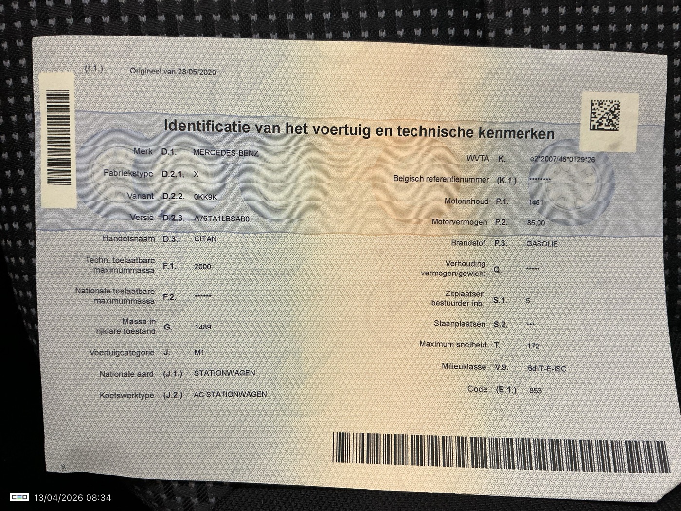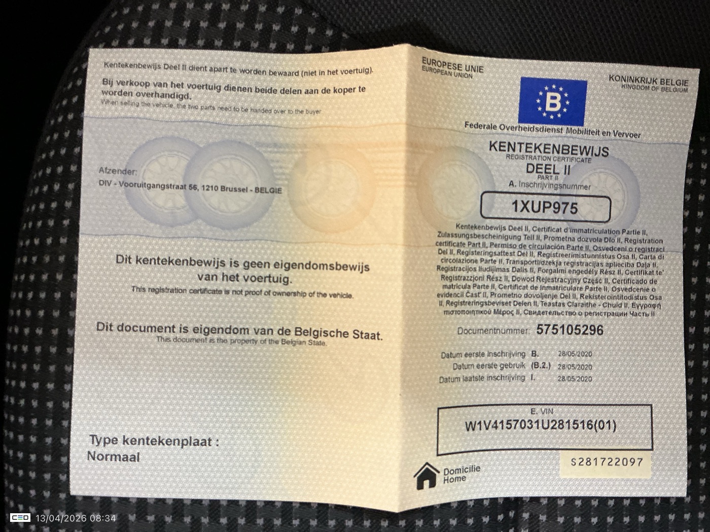 Registration certificate: