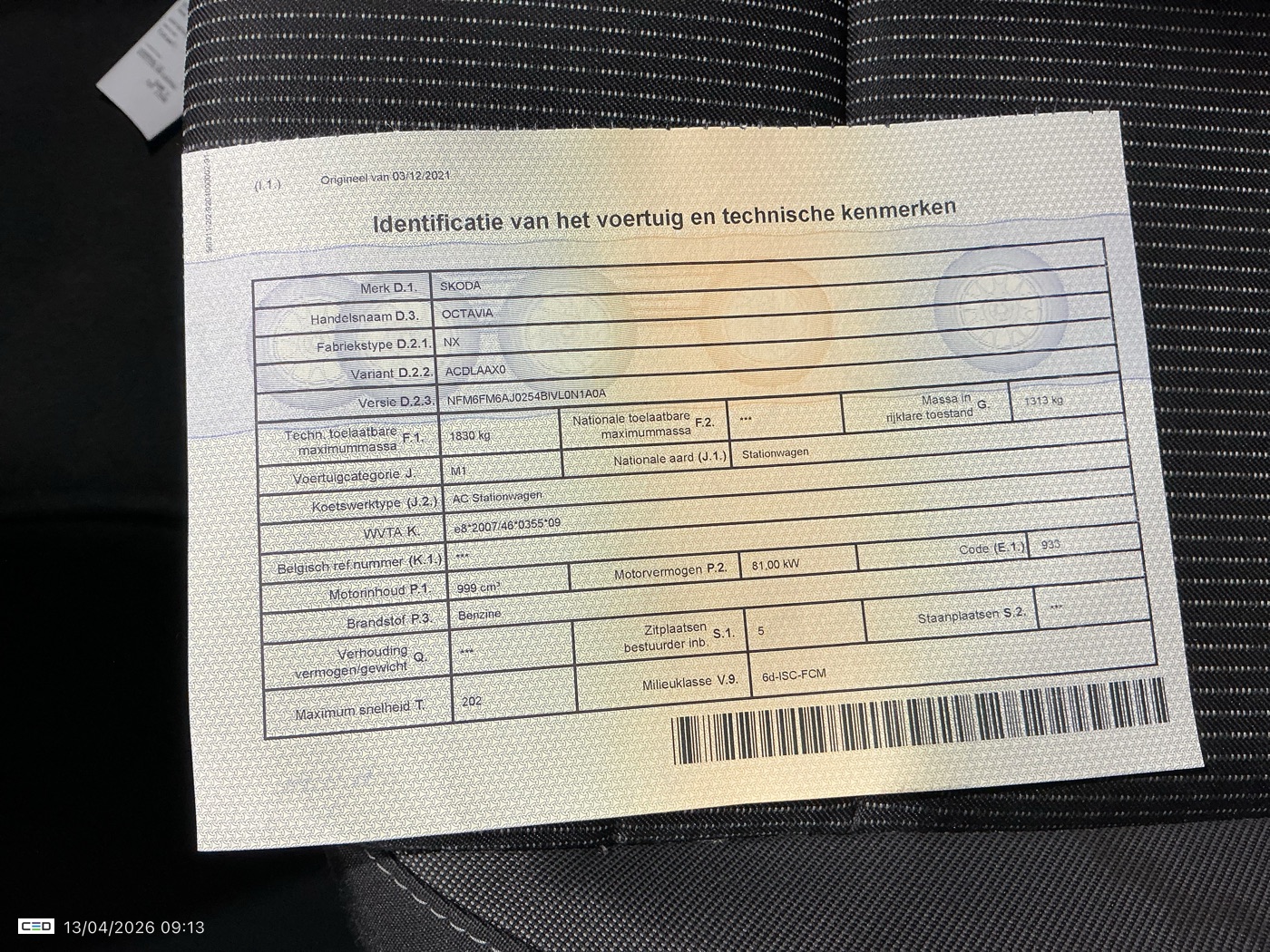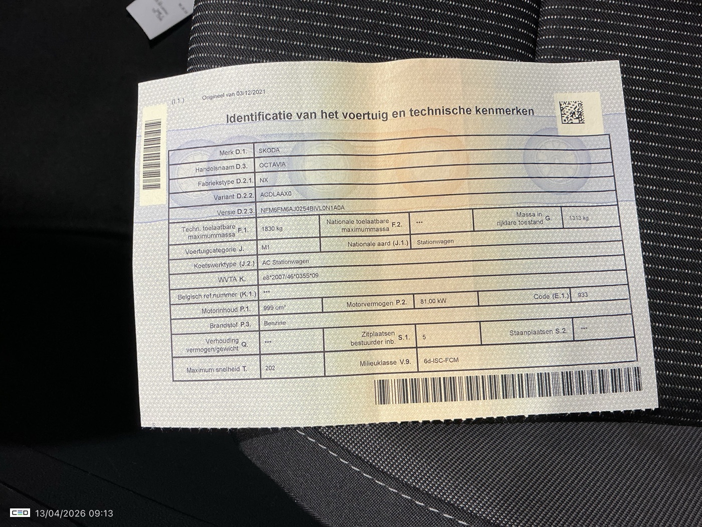 Certificate of conformity: