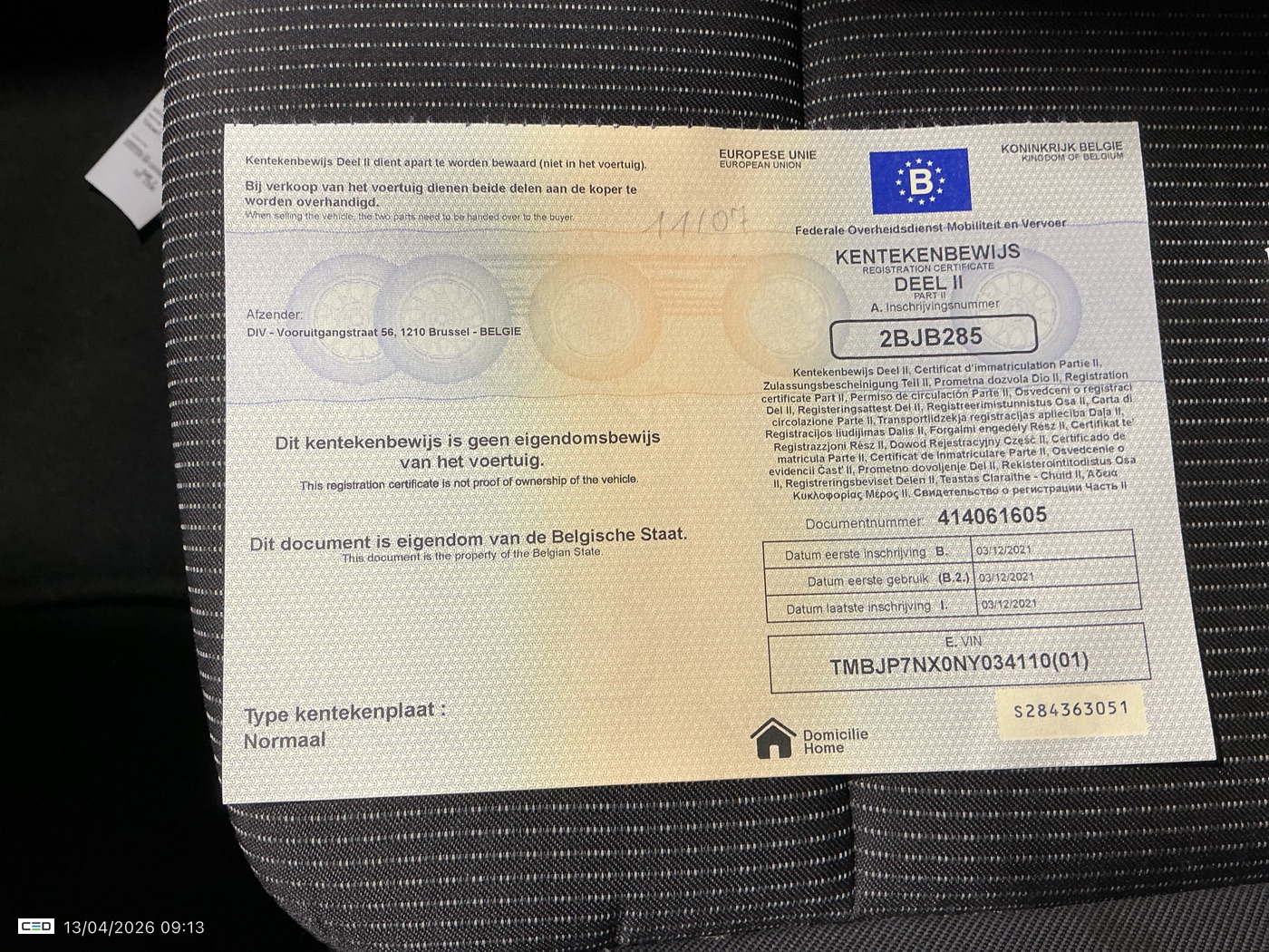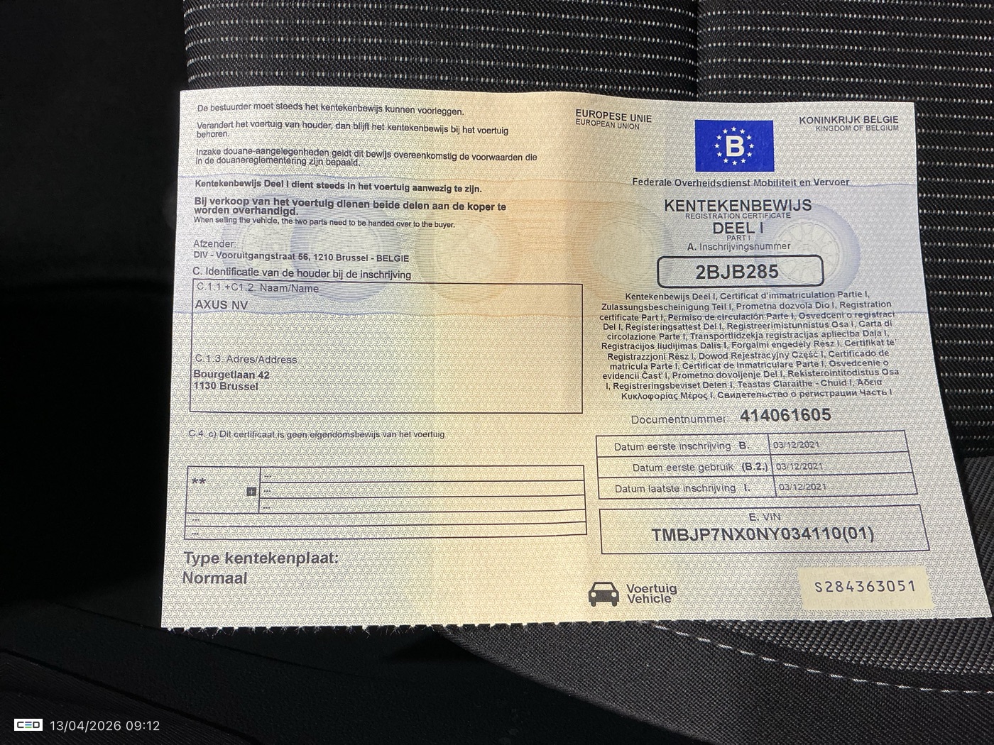 Registration certificate: