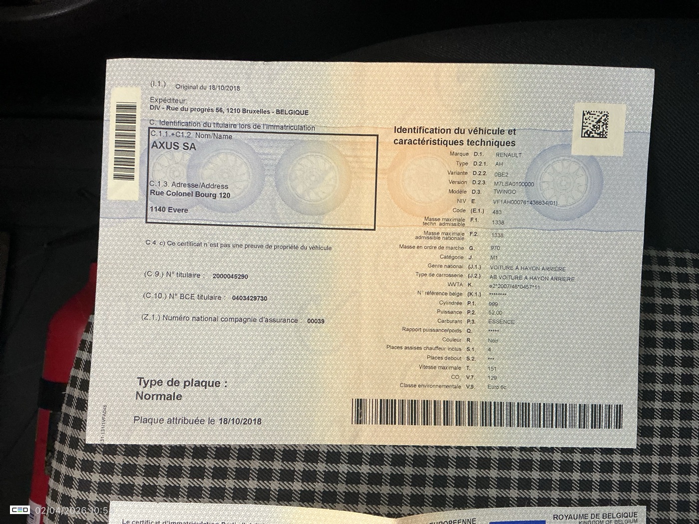 Registration certificate: