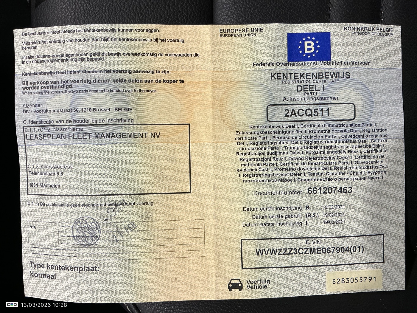 Registration certificate: