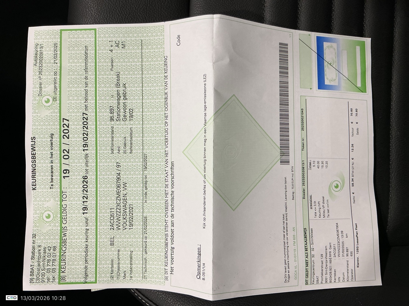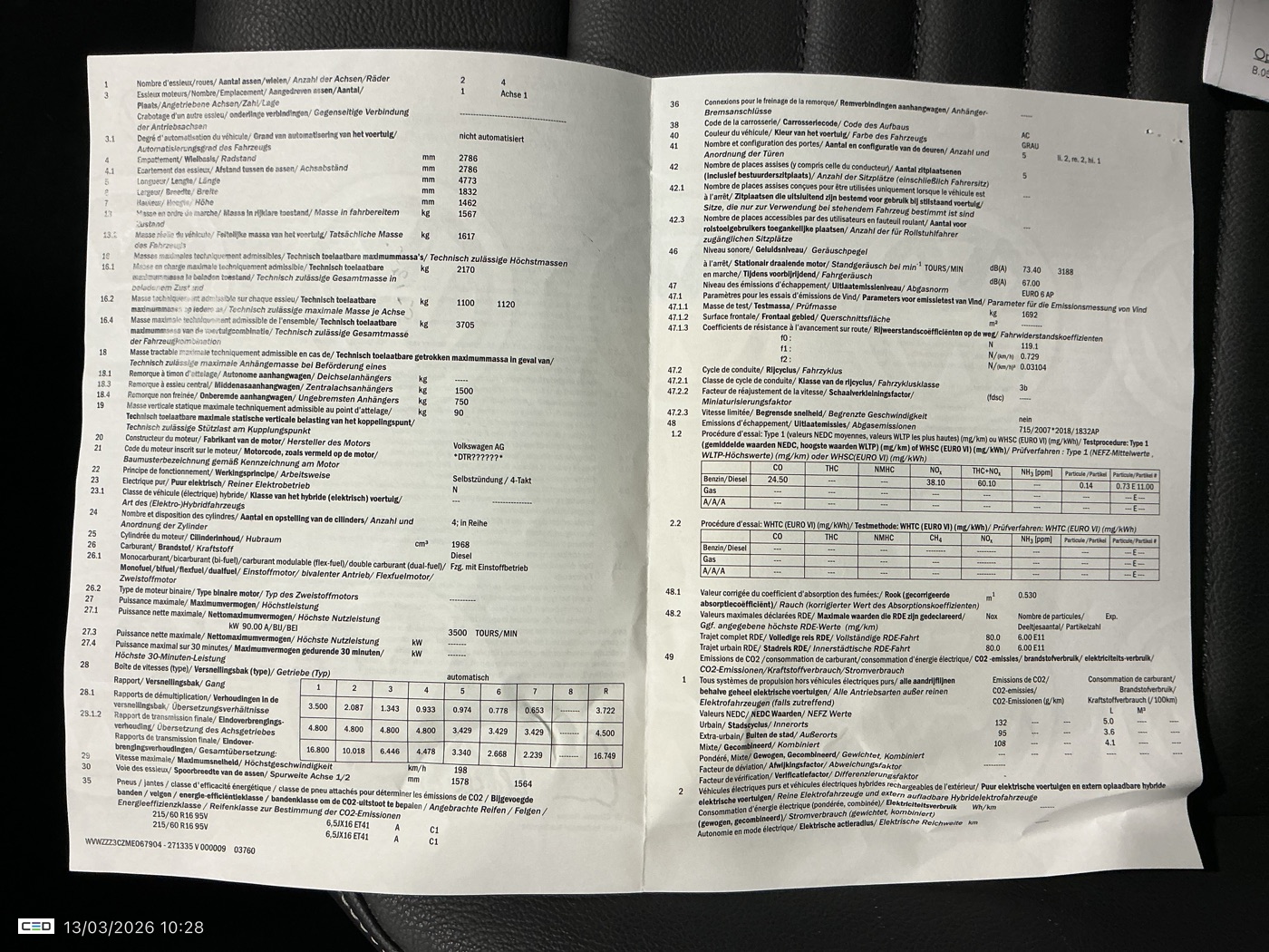 Certificate of conformity: