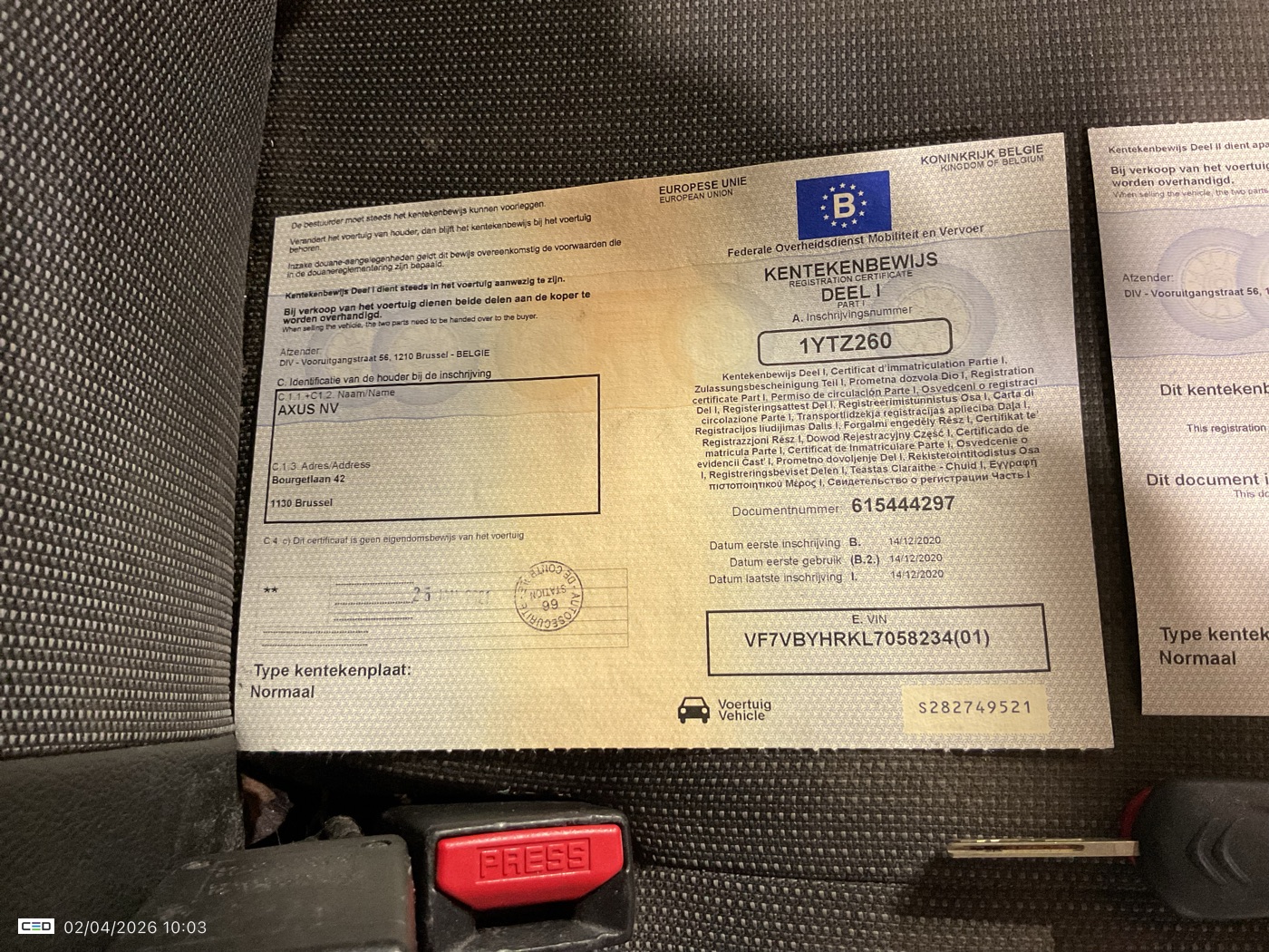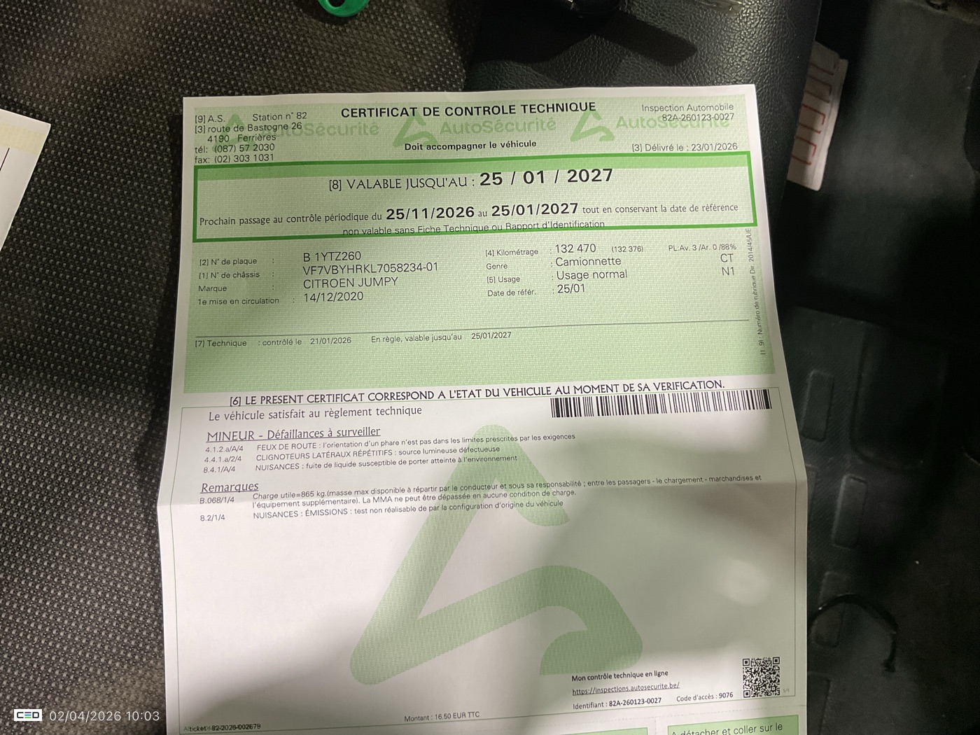 Siège avant gauche réglable en hauteur