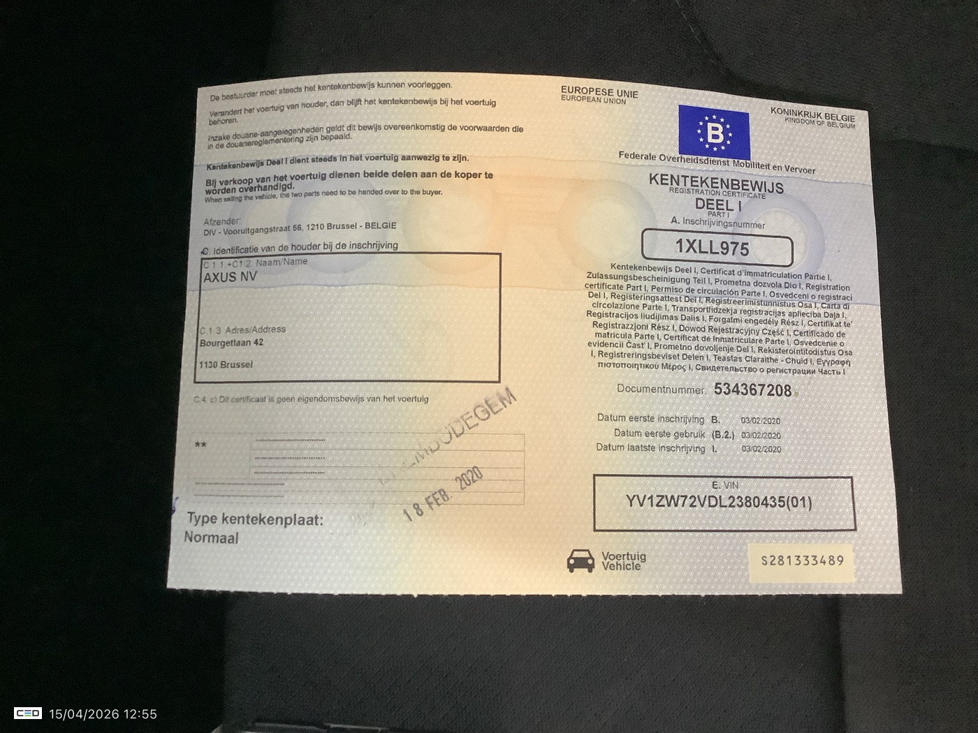 IDENTIFICATION VEHICLE