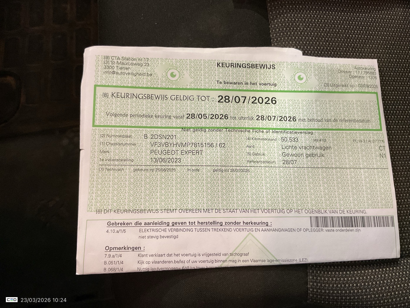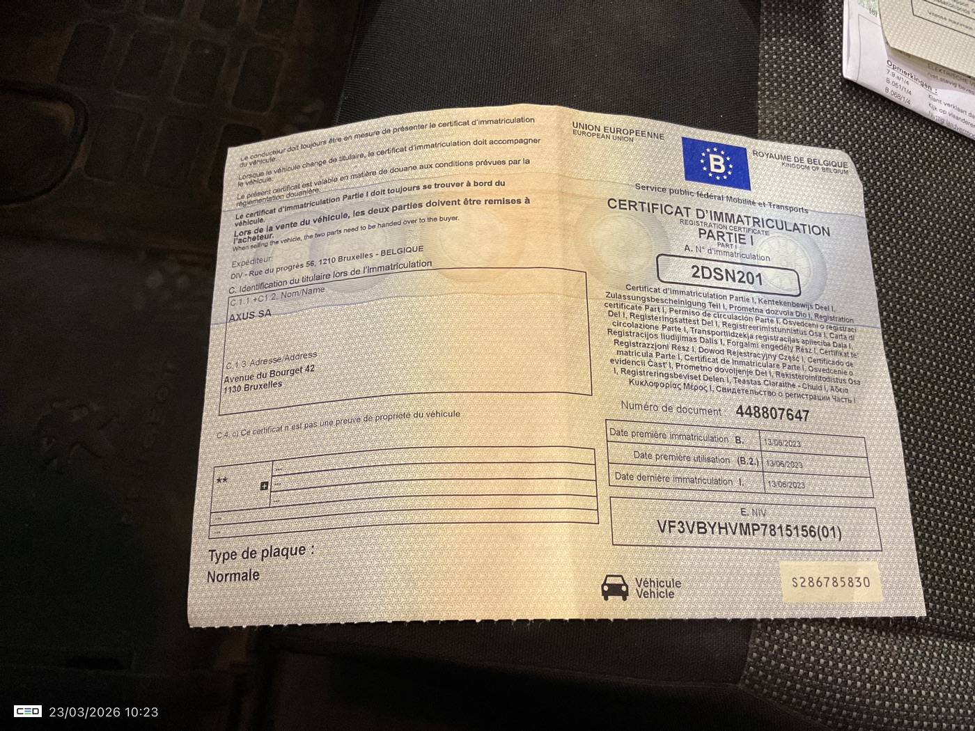 Registration certificate: