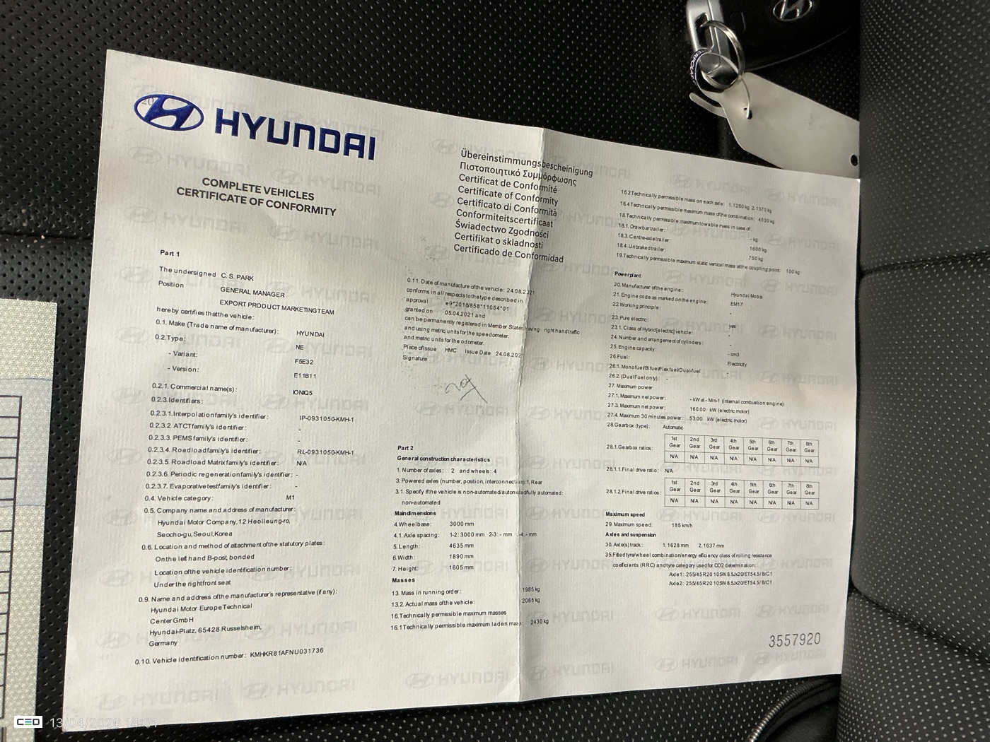 Certificate of conformity: