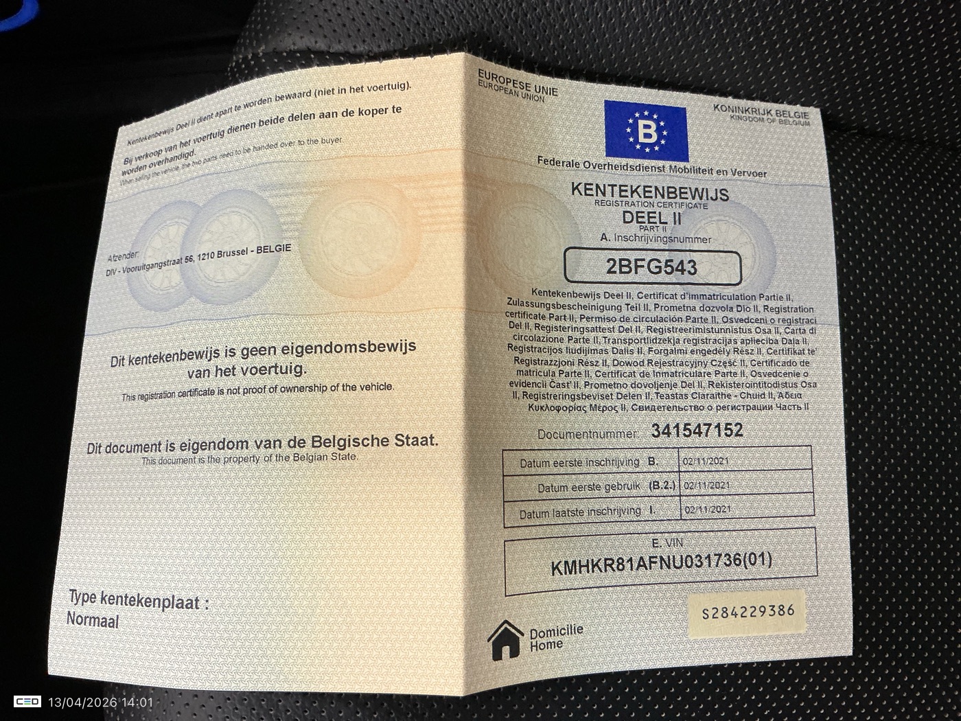 Registration certificate 2: