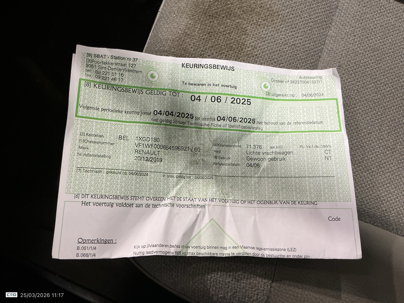 Registration certificate: